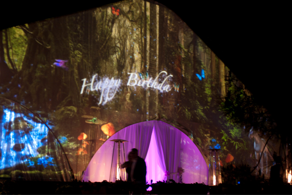 For this event we were brought in by our friends at Ambrosia/Jupiter PX as well as Megavision Arts to provide video for a private party in a backyard in Beverly Hills. We did 2 aspects of this. The first was doing a blended scenic projection on the front side of a tent. Second, we provided a large screen on the inside of the tent as well as a 3 camera shoot for several mainstream musical artists.