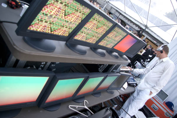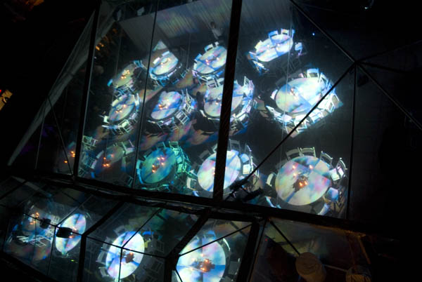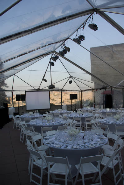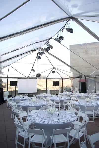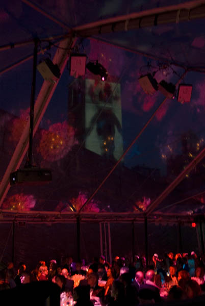 Our partners at Acme Design asked us to come in on this amazing event to design and engineer, as well as opperate this amazing event on the roof of the San Francisco Arts Institute. This event was honering doners to the school who have collected a massive video art collection and the designer, Francesco Di Grado, wanted to put the video onto every table in the event. We controlled the tables in groupls of three as well as two screens for the actual event. We also designed a sound system that made a good clean sound system throughout a tent that went up a stair case for two seperate areas. We hung 24 projectors and controlled everything through a Folsom Screen Pro Plus 1604 with a Screen pro 2000 added in as well. We also did the lighting design throughout the event. Please cal if you have any more questions about this event of if you need help to design an amazing event of your own.
